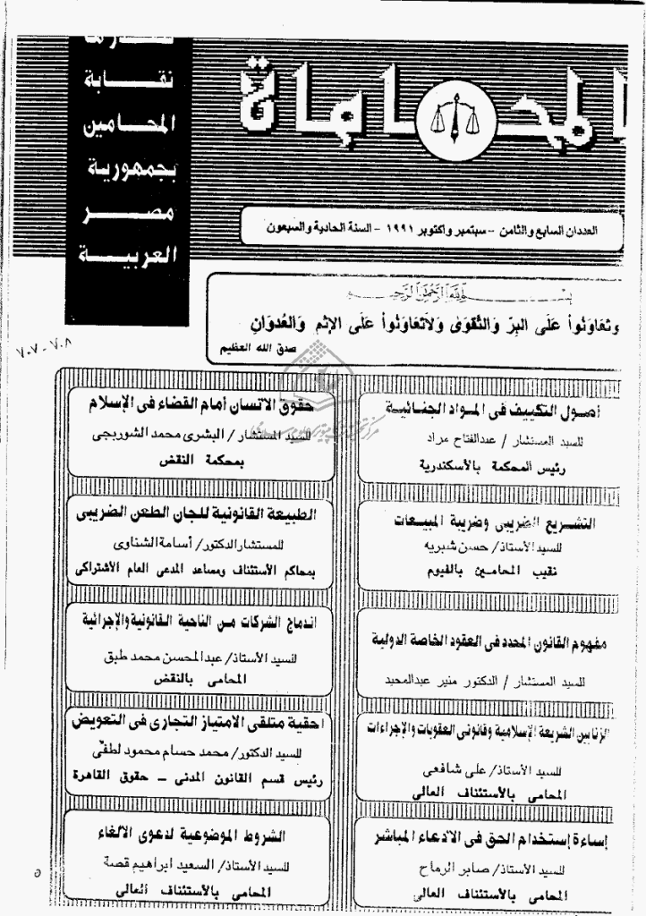 العدد الأخير :السنة الحادیة و السبعون، سبتمبر و أکتوبر 1991 - العدد 7 و 8